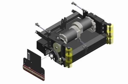 The system consists of two cylindrical brush rollers turning at high speed against each other, this combined with the heavy adjustable brush pressure ensures a smooth aggressive cleaning action. The roller brushes sweep loose dirt and debris into a collection tray, which enables the operator to clean without pre-sweeping in most applications.